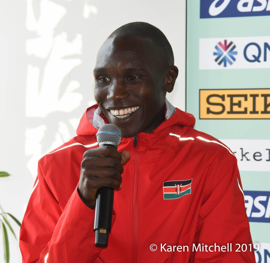 Geoffrey Kamworor (KEN), 2 time World XC champ, expresses confidence. (Karen Mitchell)