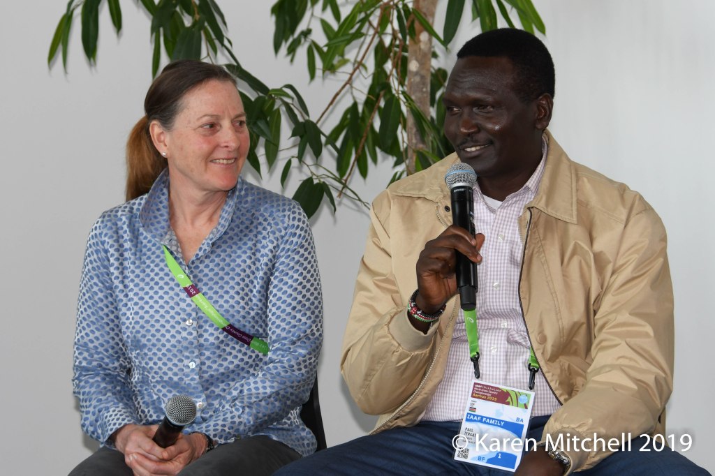 Lynn Jennings (USA) 3 time World XC champ with Paul Tergat (KEN) 5 time World XC champ. (Photo by Karen Mitchell).