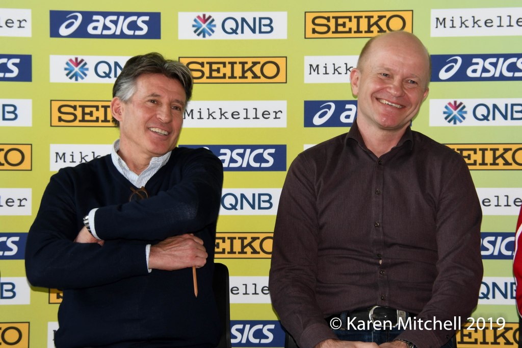 Sebastian Coe, IAAF President and Jakob Larsen, LOC Director, who designed this very special course. (Photo by Karen Mitchell).