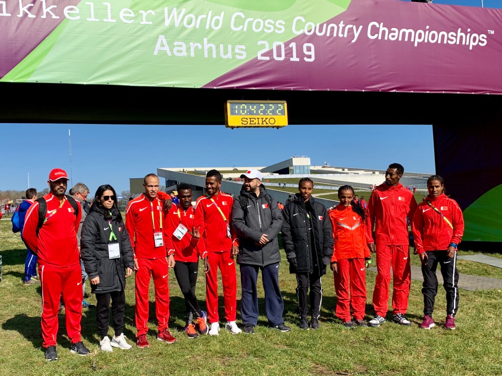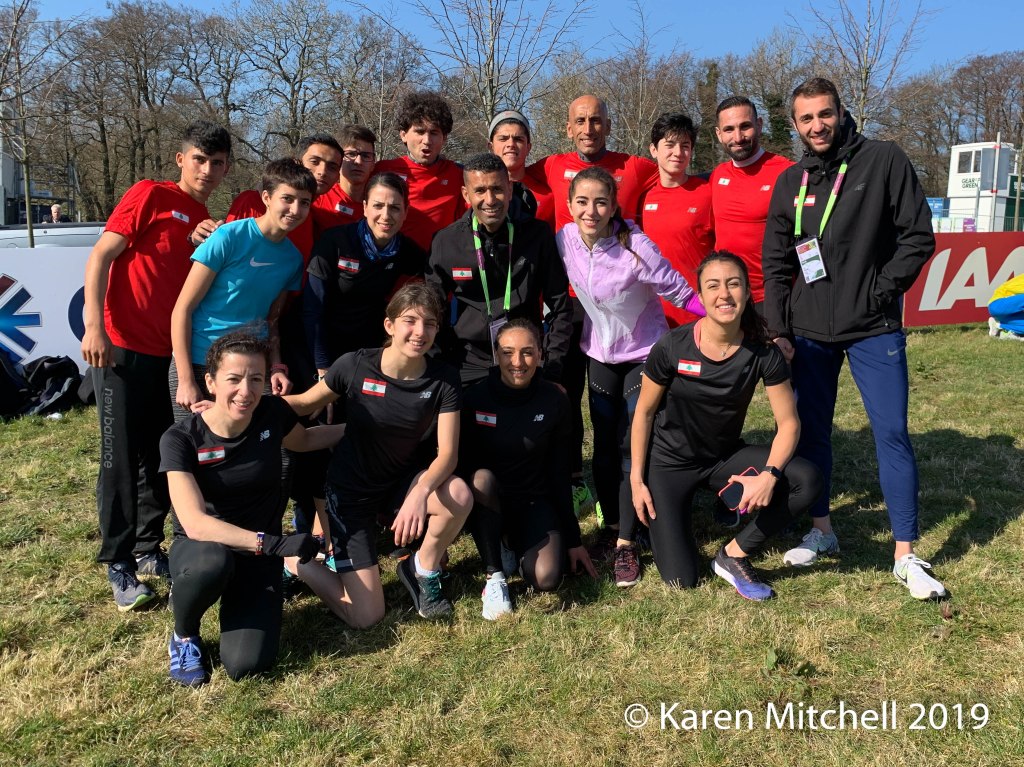 Bahrain TeamGreat Britain World XC ready to go, with the museum roof in the background. (Photo by Karen Mitchell)Ukraine World XC team in Aarhus. (Photo by Karen Mitchell).Irish team at World XC in Aarhus. (photo by Karen Mitchell).Lebanon team at World XC in Aarhus. (Photo by Karen Mitchell).Lynn Jennings, and Paul Tergat, World XC legends. (Photo by Karen Mitchell).