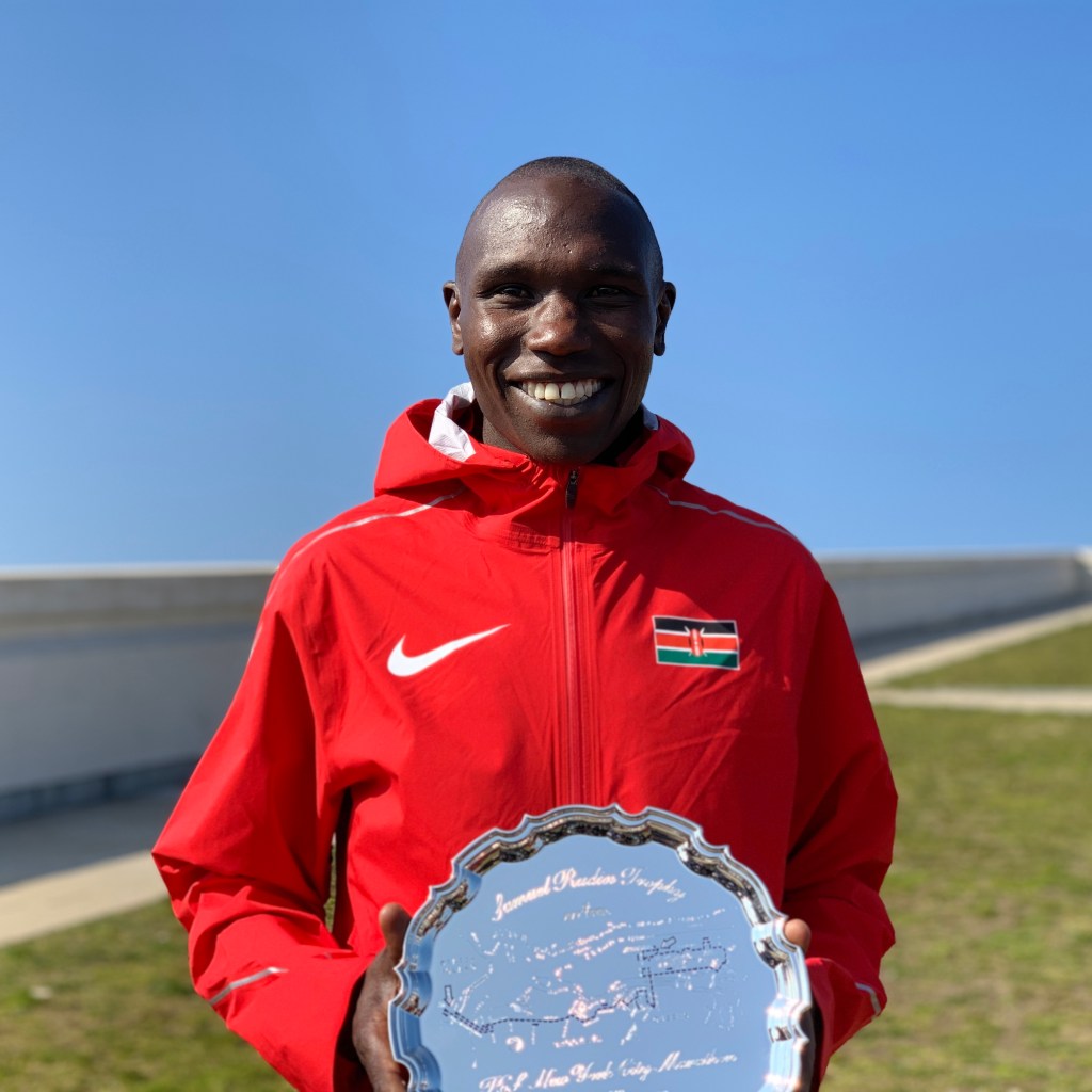 Geoffrey Kamworor (KEN) World XC Champ with NYC Marathon award. (Photo by Karen Mitchell).