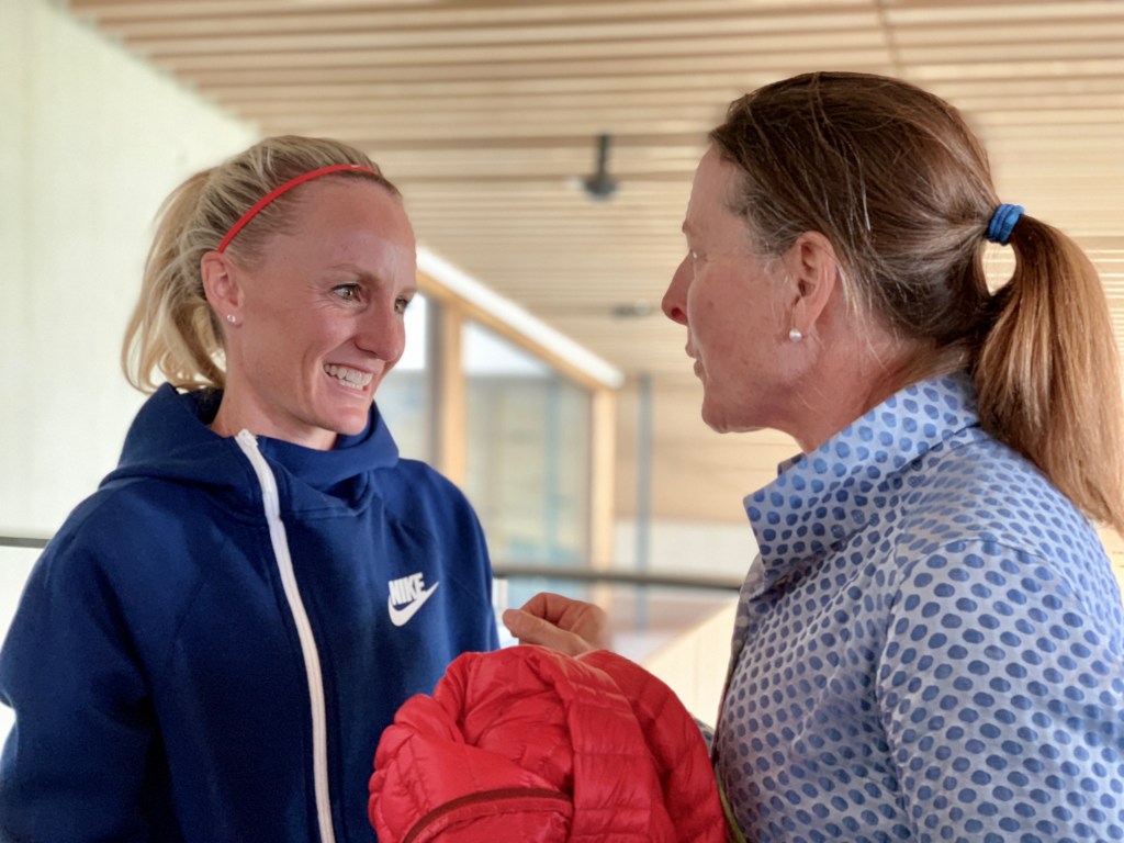 Shalane Flanagan and Lynn Jennings. (Photo by Karen Mitchell).