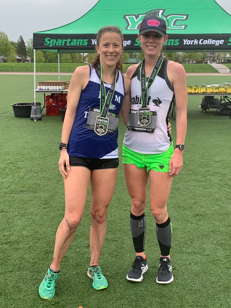 Katie O’Regan of Lititz (1:22:52, 1st Place), and Megan DiGregorio of Baltimore (1:26:38, 2nd place) both finished in the top ten overall. Katie set new course record. (Photo by Clay Shaw)
