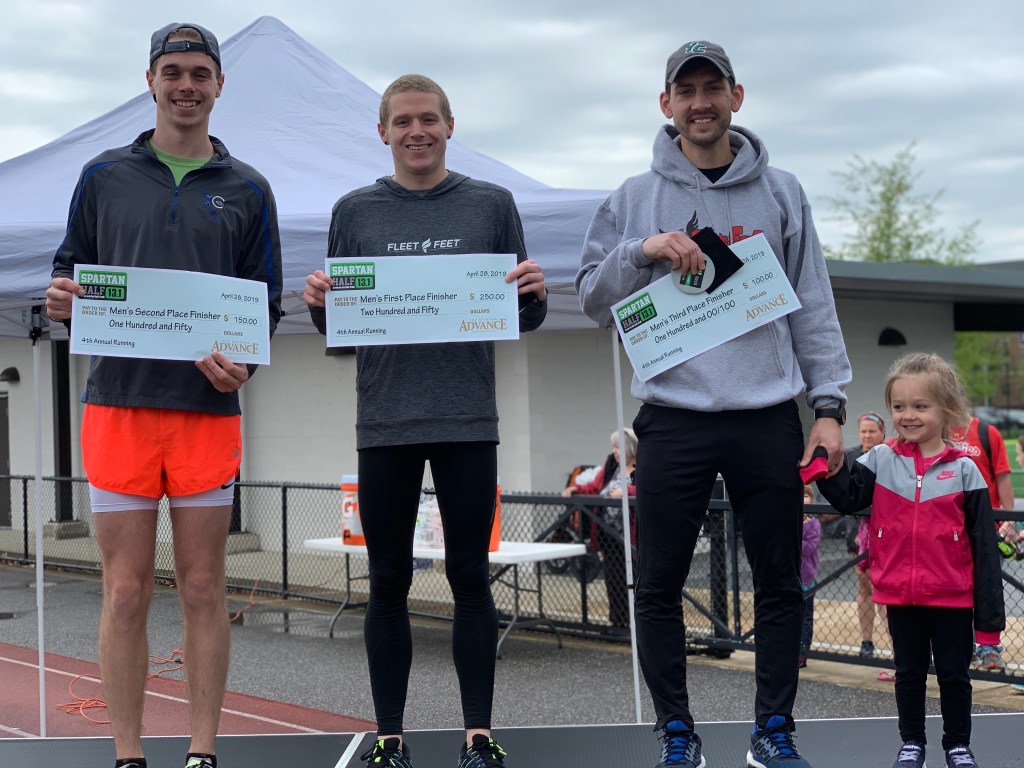 Three hundred YCP student athletes braved the weather and the early wake-up call to staff the 4th Annual Spartan Half Marathon. The rain and the race both started at 8 am. The rail trail did get quite muddy, as the lead cyclist and your race photographer can attest to. The rain quieted down after the elites finished, and stopped all together before the end of the race. In total 207 registered with 174 finishers. Weather conditions, and having Easter Sunday the week prior (and those races moving to our crowded weekend) were likely factors. The event benefits The Spartan Advance for York College athletics.
