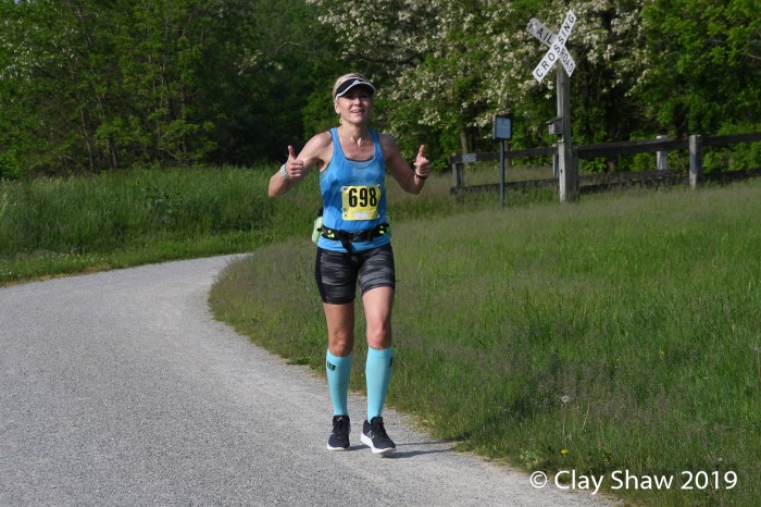 Jaclyn Schuerholz of Baltimore, MD., also won easily in 3:10:13. Schuerholz recently ran 2:52:41 at the 2019 Boston Marathon. Whitney Heydenreich of Danville, PA was second in 3:22:07. Luisa Fairfax of Baltimore was third female in 3:23:40. Cindy Conant (age 58) of Kensington, MD was top Master and fifth overall in 3:32:24.