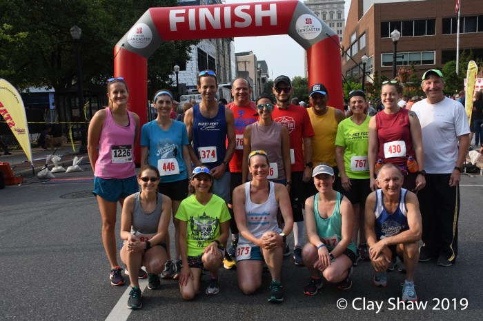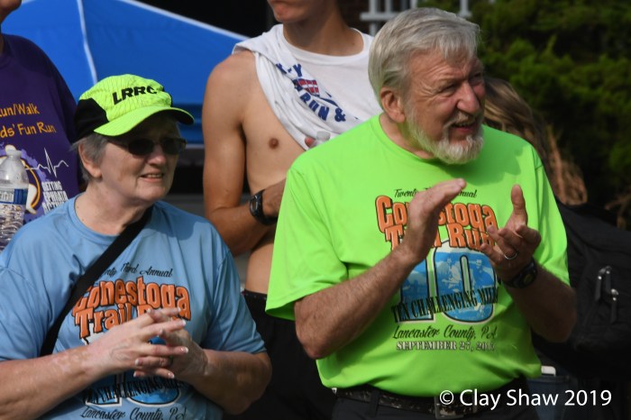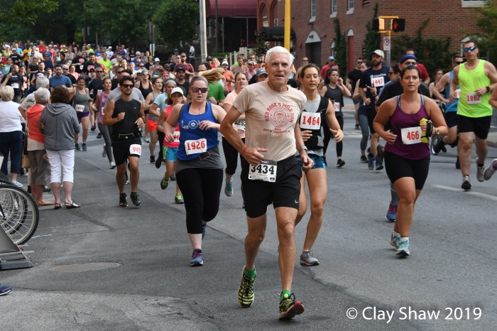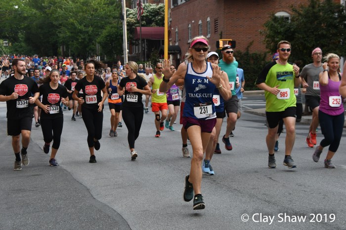 Some strong times were set by some long-time road-race veterans. Dave Anderson of Spry (York County) at 66, ran 34:59. Mimi Newcomer of Lancaster at 61 ran 38:36. Dave Howey of Etters, age 71, ran 37:27. The remarkable Heidi Moebius of Lancaster at 80 ran 48:09. Long-time Lancaster running icon Bill Smith had run all the Red Roses, and now is the official starter.
