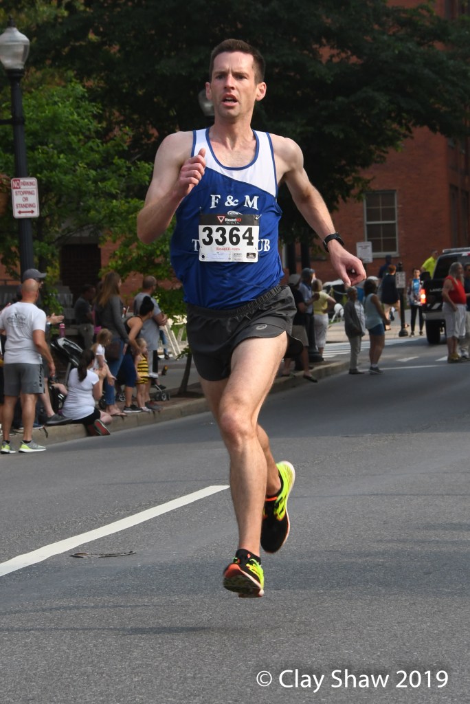 LANCASTER, PA, JUNE 1, 2019—Otis Ubriaco of Lancaster ran a thoughtful well-planned strategic race. Knowing his strengths and weaknesses on race day, Ubriaco figured he would need to distance himself from his competitors around the three-mile point. Ubriaco did just that prior to the big uphill in Mile Four, and came home with the victory in 26:31. Ubriaco told me that he did not want to chance a sprint on the final downhill blocks to the finish. Isaac Bryan, who recently won the Race Against Racism/Lancaster 5K took second in 26:38. Duncan Hopkins placed third in 26:53. Evan Sandt, 49, of Conestoga was top Master in 30:19.
