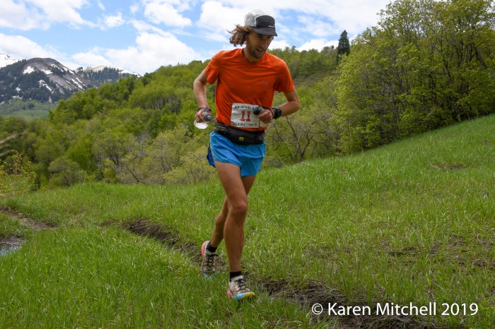 PROVO, UT, JUNE 8, 2019—Kyle Barrett of Salt Lake City won his second straight Squaw Peak 50 title. Barrett’s time of 7:45:01 gave him an 18-minute victory. Nicholas Sourlos of West Jordan, Utah was second and top Master (no double dip) in 8:01:03. Ian Farris of Draper, UT was third in 8:08:01. Navajo carvings went to the top two overall, and the top two Masters Mick Jurynec of Millcreek, UT (5th, 8:11:55), and Brandon Dase of Spanish Fork, UT (6th, 8:11:55).