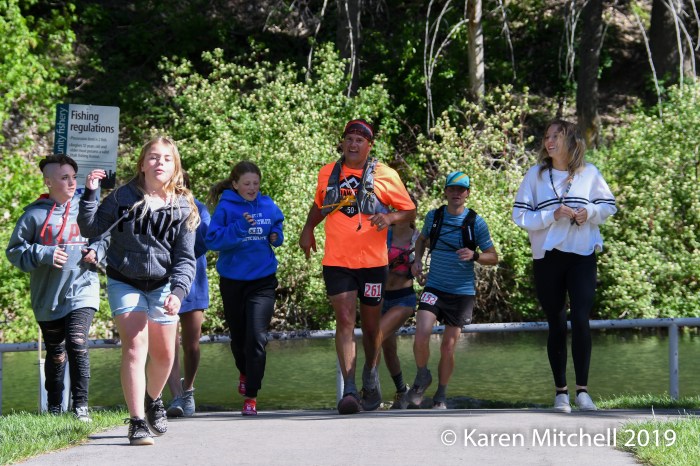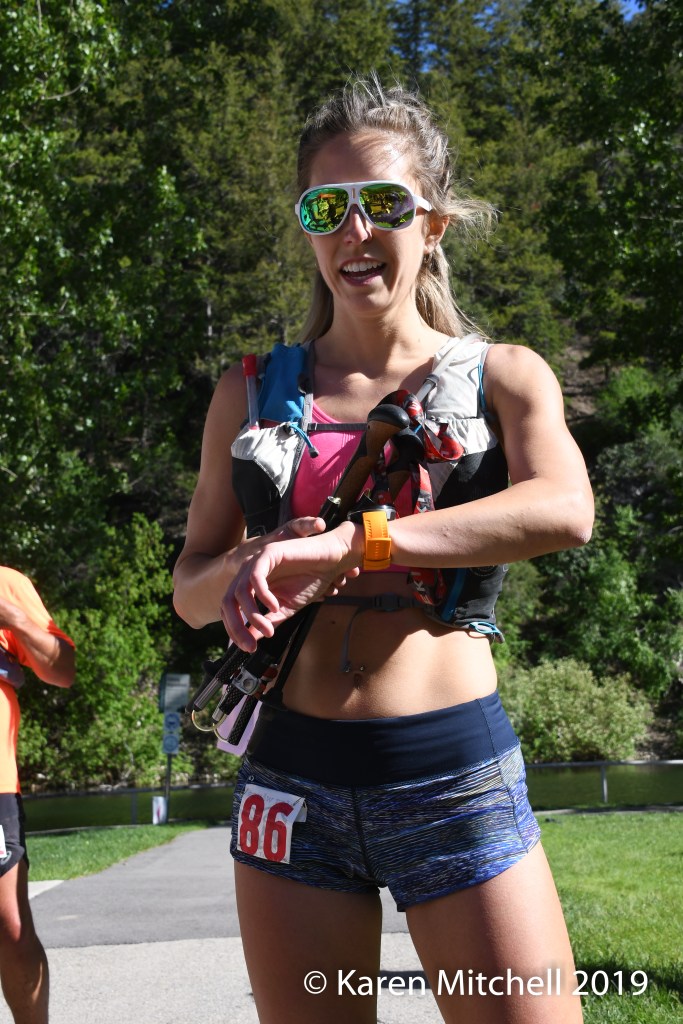 Megan Burke of Winter Park, Colorado won the women’s overall by a full hour. Megan finished in 8:38:46, with only nine men placing ahead of her. Megan is originally from West Chester, PA. and played field hockey at Penn State. She is looking at the Eastern States 100 in Lycoming County, PA (August 10) as her next event. Tiff Schwartz of Salt Lake City was second in 9:38:41. Shannon Black of Heber City, UT was third in 9:43:27. The Navajo carving winning Masters were Caitlin van den Berg of Cape Town, South Africa in 10:15:52 placing 8th overall. Keira McMahon of Nederland, CO was second Master and 9th overall in 10:20:28. Your photographers Karen Mitchell and Clay Shaw are very proud of our niece, Keira, on her great run in the Utah Mountains.