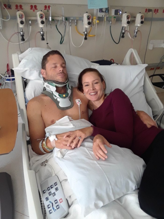 Meanwhile, Liz learned of Dr. Nicholas Theodore of Johns Hopkins, a nationally recognized neurosurgeon and expert in brain and spinal cord injury, and became determined that her husband would have this surgeon, “the best of the best.” Nine days after his injury, Shawn was transferred to Johns Hopkins.