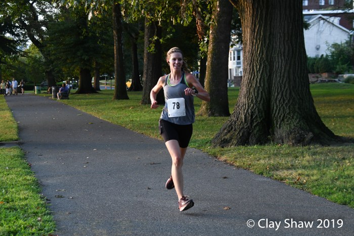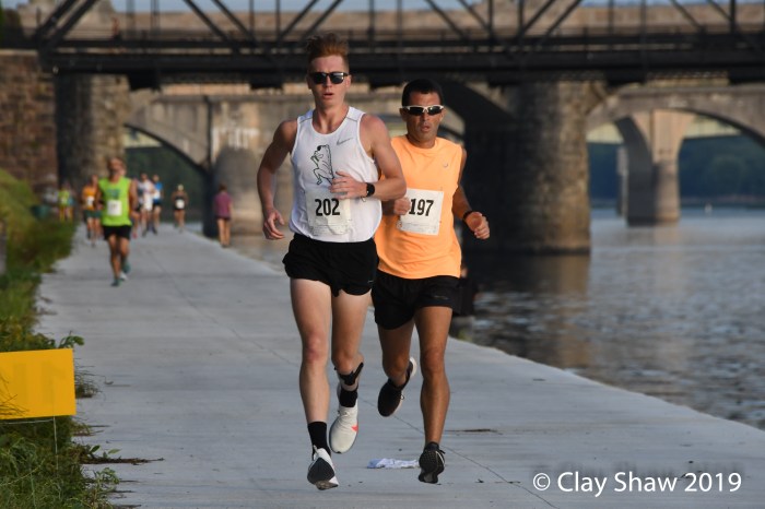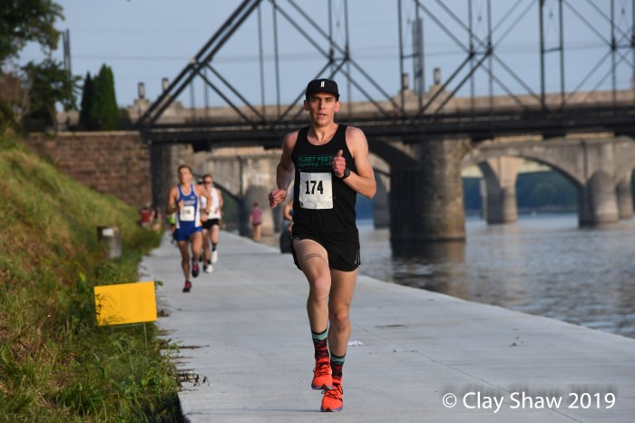 HARRISBURG, PA, AUGUST 16, 2019—Josh Sadlock of Harrisburg, who lives across the street from the course, held on the east bank of the Susquehanna River, easily won the Friday evening event in 22:22.
