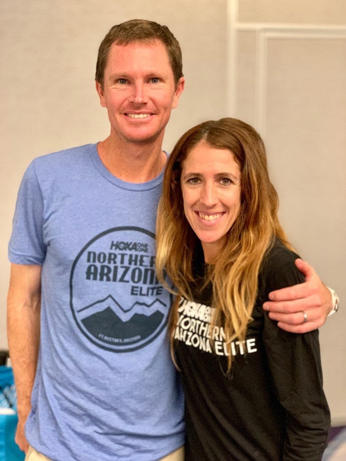 Sarah Sellers and her husband Blake Sellers of Tucson, AZ. Sarah gained fame by placing 2nd in Boston 2018. Her PR is 2:36:37 set in NYC Marathon 2018. (Photo by Clay Shaw)