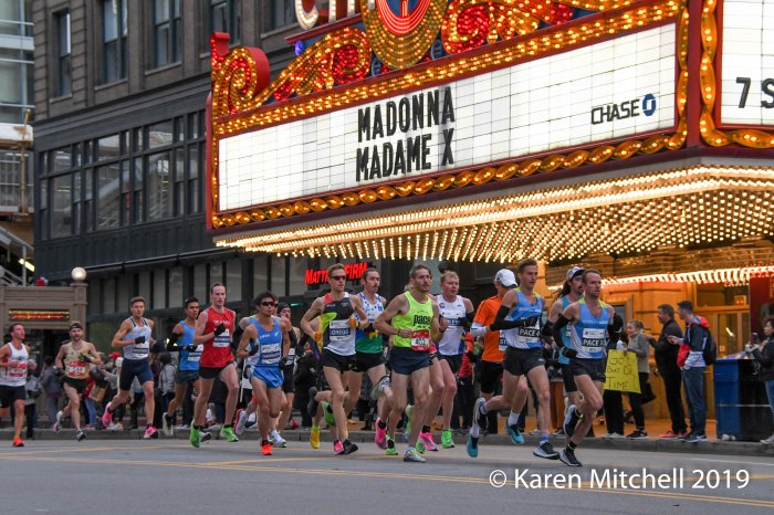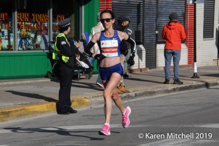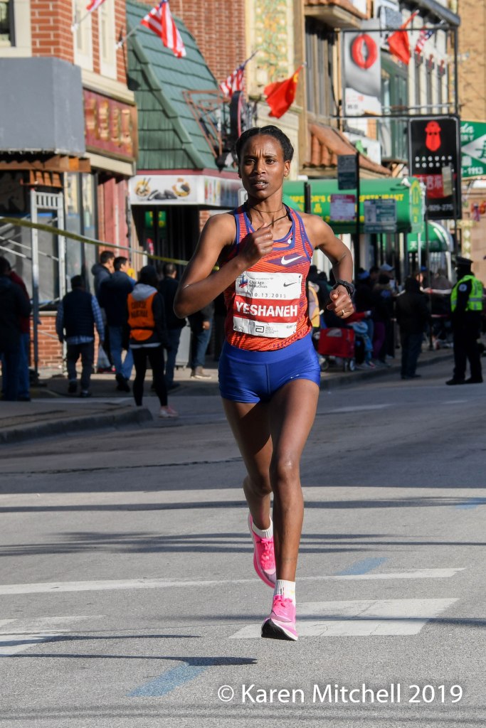 On marathon day Kosgei went out fast, with only male pacers Geoffrey Pyego and Daniel Limo with her. Afterwards she gave credit to them for protecting her from the winds. She said the headwinds could have “pushed her down” without the benefit of the two pacemakers. By the time she finished, Kosgei had shattered the 17-year old world record by winning in 2:14:04. (Paula Radcliffe’s 2003 WR of 2:15:25 was set in London.) Kosgei’s splits were nearly identical; she ran a perfect race. Joining Kosgei on the podium were Ethiopian runners, Ababel Yeshaneh (2:20:51), and Gelete Burka (2:20:55).