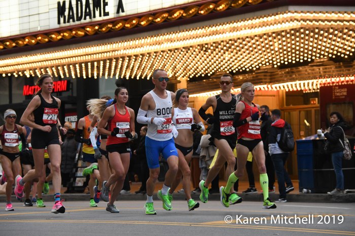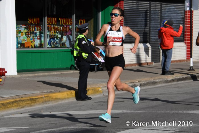 It was also a great day for USA women. Emma Bates of Idaho led the way with a new personal best of 2:25:27 and fourth place overall. Bates left the Ben Bruce pace group and found male runners, who she didn’t know (but would like to thank), to run with as she moved forward running strong throughout the race. Fionnuala McCormack of Ireland took fifth in 2:26:47. The cross country great has wanted to break the 2:30 mark for quite some time, and did it in a big way. Stephanie Bruce of Flagstaff, AZ was sixth and the second USA runner with a PR of 2:27:47. Lindsay Flanagan who grew up in Roselle, IL in the Chicago area took seventh overall and third USA with a 2:28:08. Flanagan now lives and trains in Boulder, Colorado. Laura Thweatt of Superior, CO made a great comeback run with a 2:29:06 and eighth overall after a few frustrating years with injuries. Lisa Weightman of Australia was ninth in 2:29:45 and was top master. Taylor Ward of Ogden, Utah was tenth and fifth American in a new personal best of 2:30:14. On a day with good temperatures for running fast, several elites had personal bests. 58 women broke 2:45, 83 women broke 2:50, and 204 women broke the three-hour mark.