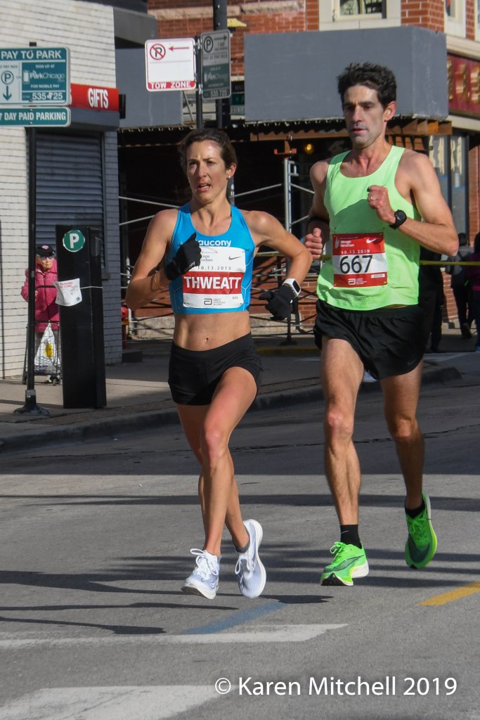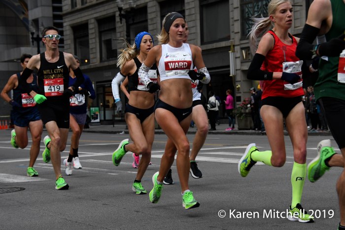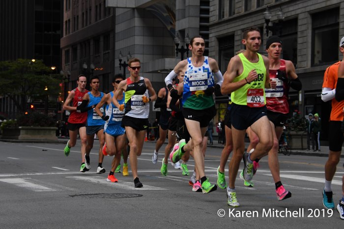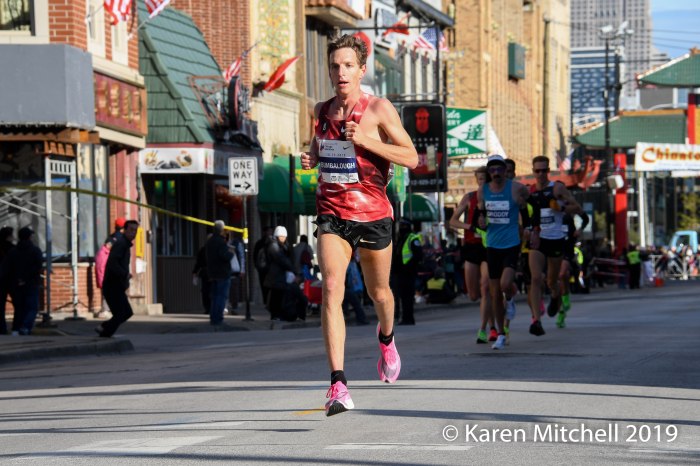 Jacob Riley of Boulder, Colorado led the American men with a huge PR of 2:10:36, placing ninth overall. Riley stated that his time was well beyond his expectations of 2:11 to 2:13. After three years of Achilles issues which included surgery, Riley said he “felt good and closed it in.” He credits the other Americans that ran in a pack of 15 for many miles, sharing the lead and working together. Jerrell Mock of Fort Collins was second USA with a 2:10:37 in his first marathon. Parker Stinson of Boulder was third USA in a PR of 2:10:53. Andrew Bumbalough of Concord, MA was fourth USA with a PR of 2:10:56. Matthew McDonald of Atlanta was fifth overall with a PR of 2:11:10. Americans Scott Smith, Brendan Gregg, Noah Droddy, Wilkerson Given, and Diego Estrada were all in the 2:11’s on the magic day in Chicago. 47 men broke 2:20 and 131 men broke 2:30 in one of the most competitive races in the world.