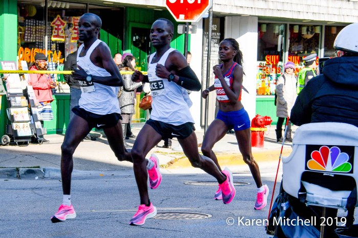 CHICAGO, IL, OCTOBER 13, 2019—Brigid Koskei of Kenya, who has been unbeatable throughout 2019, came into Chicago confident and ready. On September 8, Kosgei had set a new women’s world record of 1:04:28 at the Great North Run Half Marathon in Great Britain.