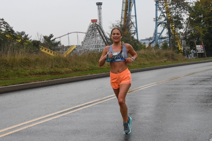 Katie Fuller of Mechanicsburg led the 1925 women who finished, with a time of 1:27:27. Kierra Zack of Dillsburg had the second fastest gun time of 1:28:36. Katie Jury of Halifax had the third fastest gun time of 1:28:45. In chip time, the gals were reversed with Jury at 1:28:18, and Zack at 1:28:21. Due to the rain, I chose to photograph near mile 12 and make a quick getaway, so I really don’t know who crossed the line first or how the awards were given.