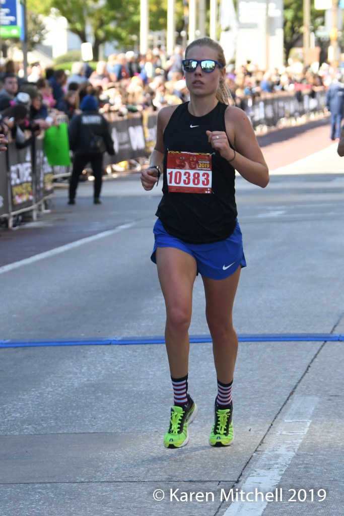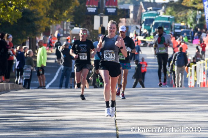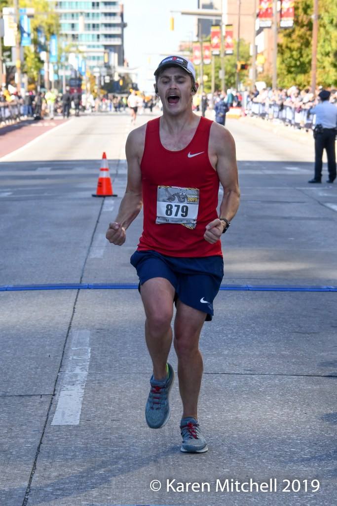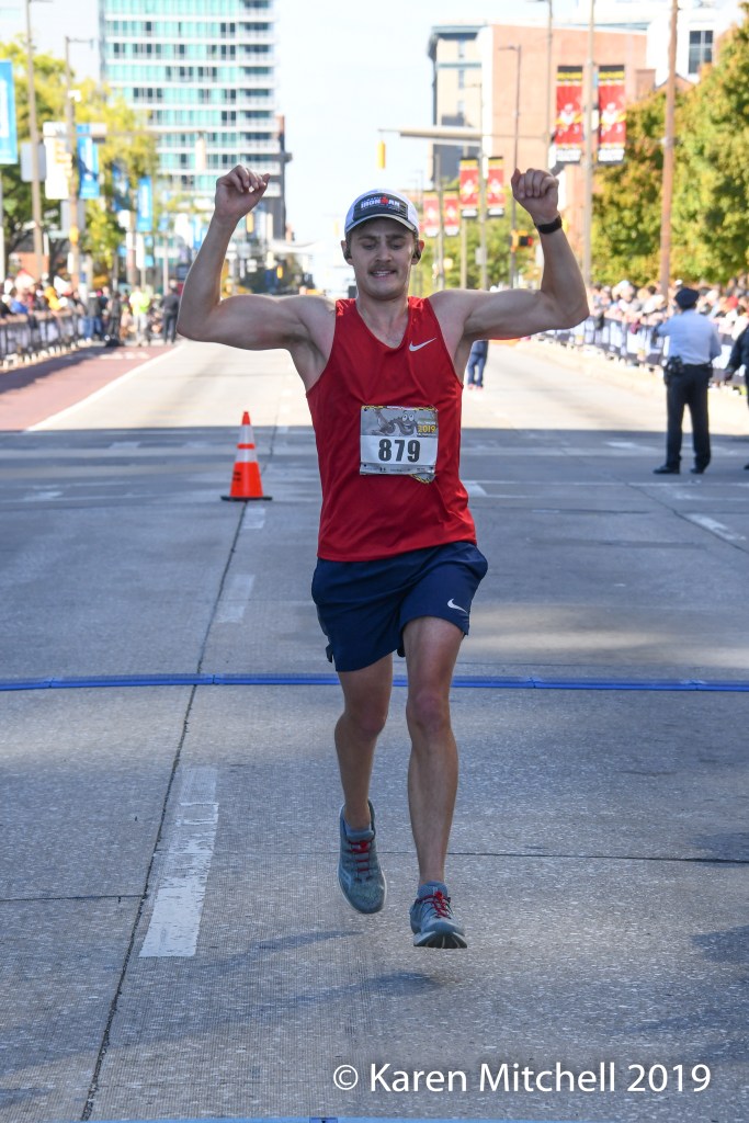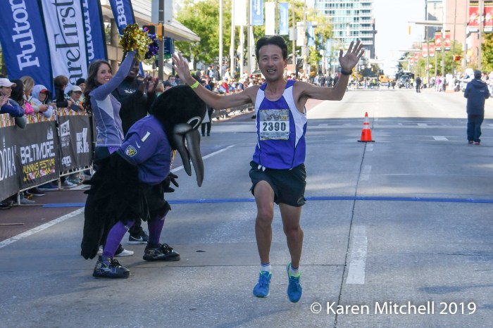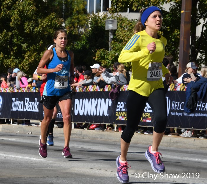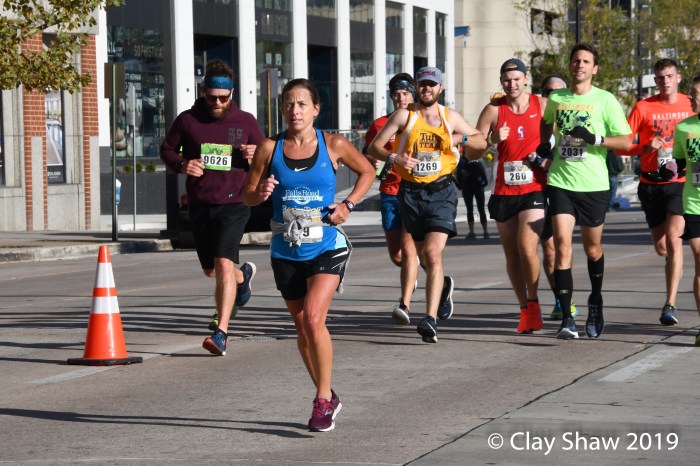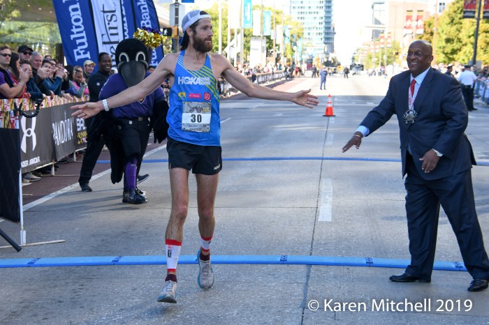 Natalie Atabek of Bethesda, MD won the women’s overall title in 2:59:16. Atabek will soon be moving to Baltimore. Elena Makarevich of Gaithersburg, MD was second in 3:03:00. Lizzie Royer of Baltimore was third in 3:05:04 in her debut marathon. Hannah Tropf of Silver Spring, MD, wife of 2016 men’s champion Jordan Tropf, was fourth in 3:13:36. Master runners Patricia Walsh of Severn, MD and Denise Knickman of Baltimore, finished three seconds apart. Walsh was 6th overall in 3:18:35. Knickman was 7th overall in 3:18:38. Knickman is 51 and still running strong. 2154 runners finished the 2019 Baltimore Marathon on a perfect weather day in Charm City.