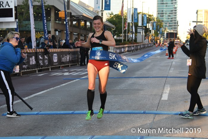 Allison Davis of Baltimore was the women’s champion, in 17:58. Shreya Narayan of Cottage Grove, Oregon was second in 18:39. Alana MacDonald of Baltimore was third in 18:51. Ten women broke the 20-minute mark, among the total 5549 finishers.