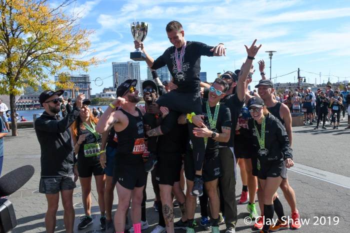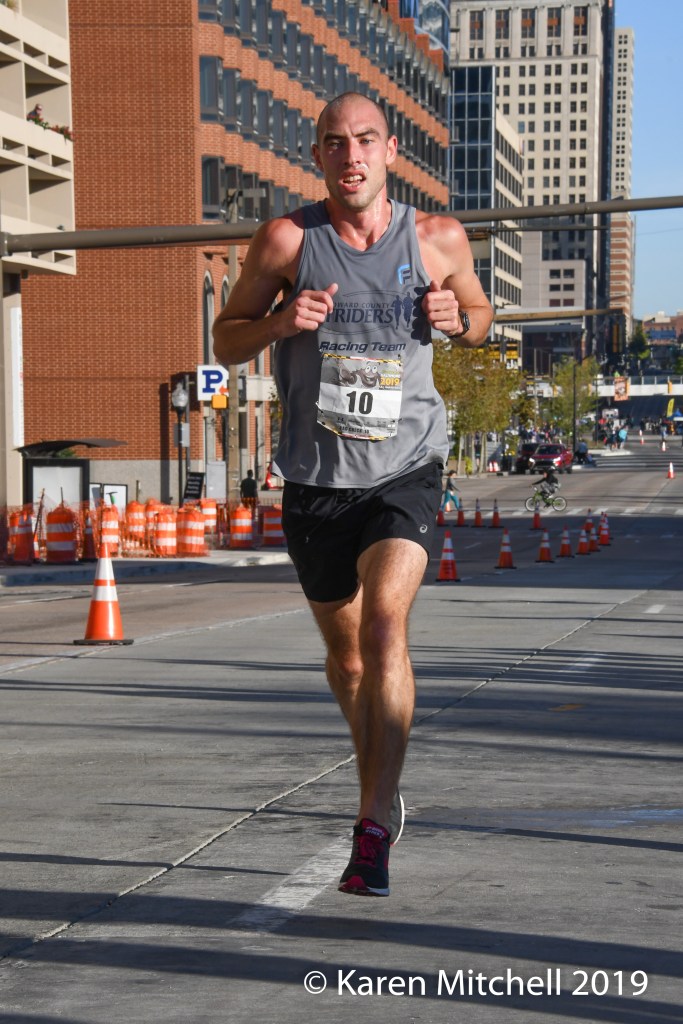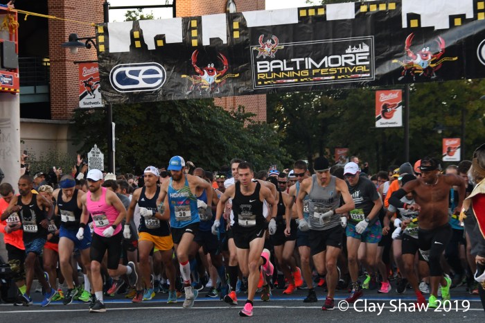 BALTIMORE, MD, OCTOBER 19, 2019—It was going to be a solid training run in prep for the California International Marathon (Sacramento, CA in December). After a 5:15 first mile, uphill, Jeremy Ardunay was committed, and had the lead. Ardunay would run alone the entire way, and go on to win in 2:27:17. It was a new PR for Ardunay, and he got the heroes’ ride from his Faster Bastards running group at the award ceremony. Michael Wardian of Arlington, Virginia, now 45, was second overall in 2:35:09. Wardian has a remarkable resume, including a marathon on all seven continents in seven days. He won them all, with an average time of 2:45. Andrew Madison of Catonsville, MD was third in 2:41:06.