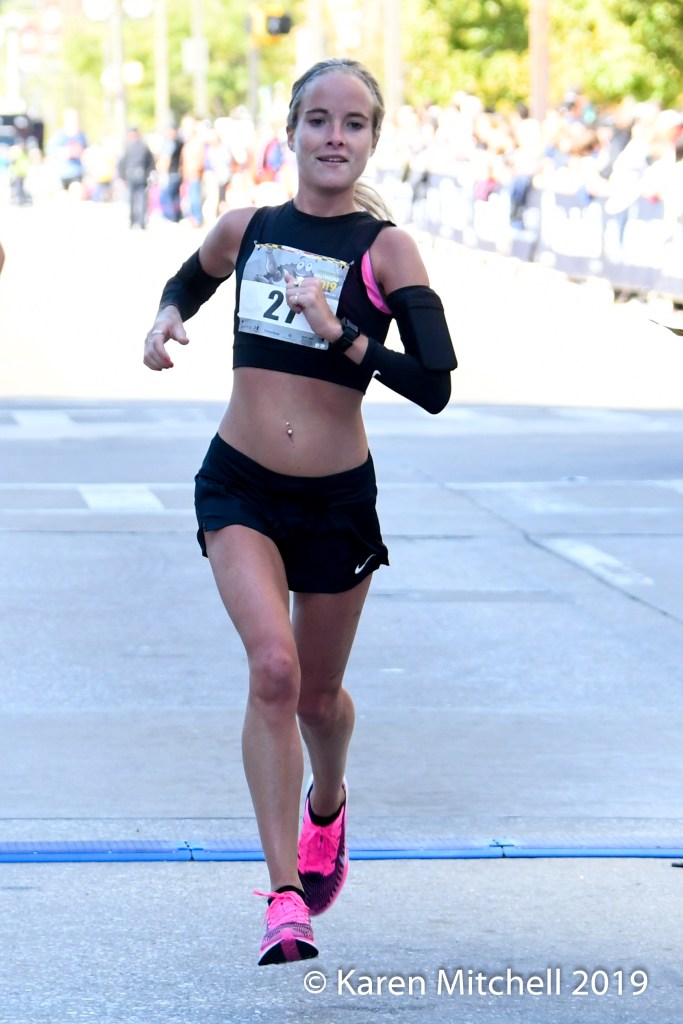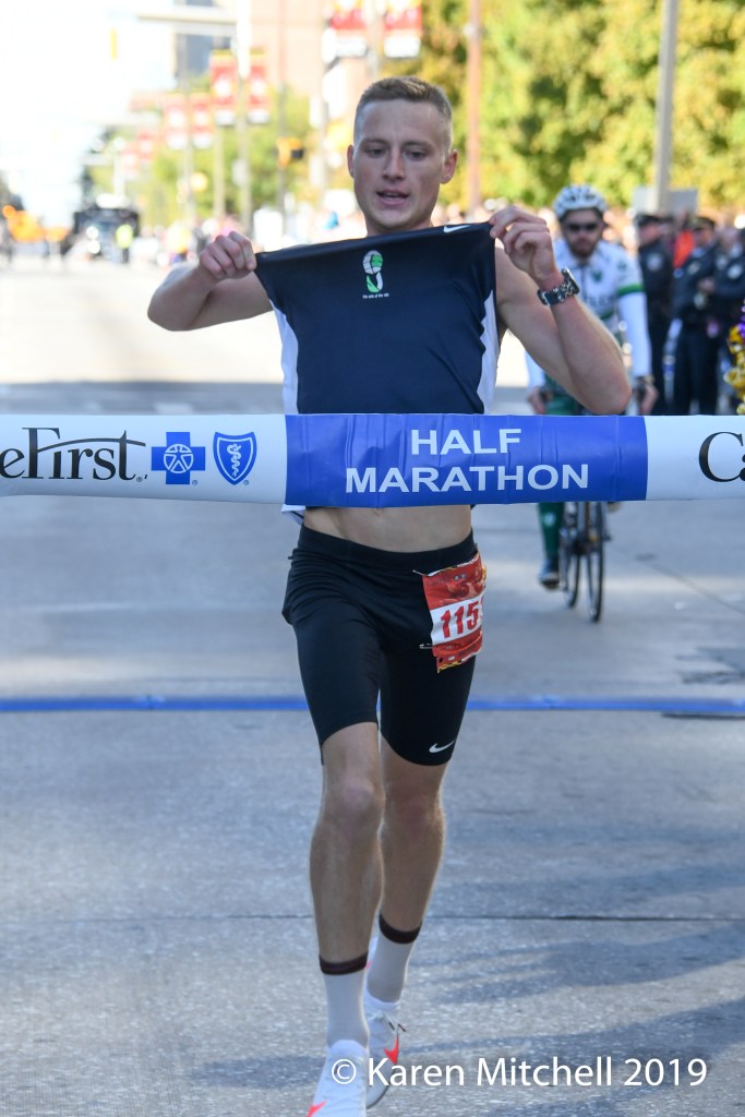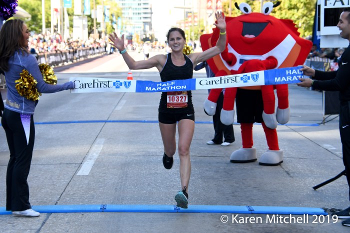 Kaitlyn Govatos of Edgewater, MD won the women’s division in 1:23:46. Amy Hansen of Auburn, Alabama was second in 1:24:39. Meaghan Murray of Baltimore was third in 1:27:36. 6904 runners finished the half-marathon.