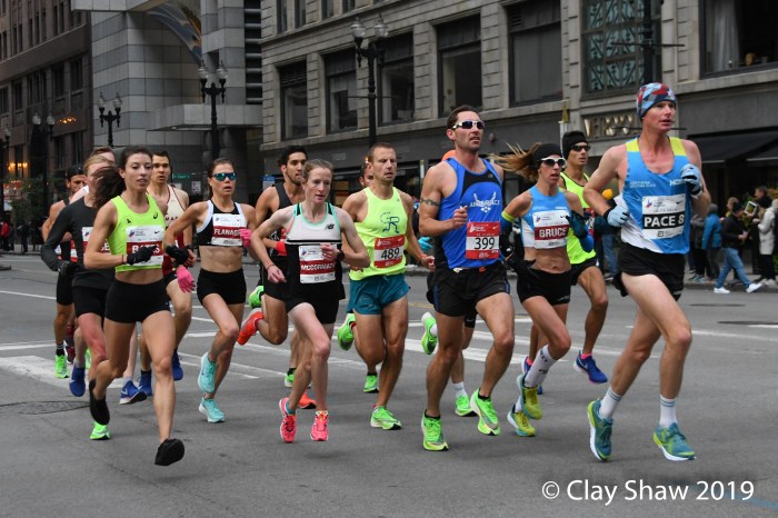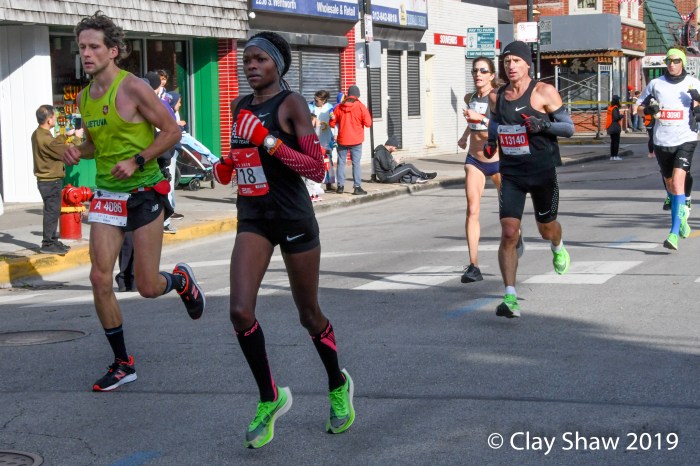 Photo gallery from the Chicago Marathon, October 13, 2019 at miles 1.5, 3, and 22. It was an epic day for many elite and sub-elite marathoners. All photos are by Clay Shaw.