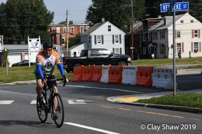 One of the key River Runners volunteers for the race is Brad Garfinkel, who has led the course aid station team since 2013. Garfinkel coordinates his team of 20 volunteers for the effort. He rents a 27-foot truck, which he and the other volunteers load with water and other supplies for the aid stations at 5 am on race morning. “We typically have all supplies delivered in time to be sitting at the intersection of Forster and Front Street watching the runners come off the Harvey Taylor Bridge,” says Garfinkel. “Once the runners all pass the first three aid stations, we begin slowly taking the course down. Once the final runners pass, we pack the rest of the course up, deliver the supplies to the YMCA and call it a day. Most of our volunteers do 5-hour shifts. Myself and a few others put in a 10-11 hour day. I enjoy the experience and giving back to the runners who get to run the areas that we call home.”