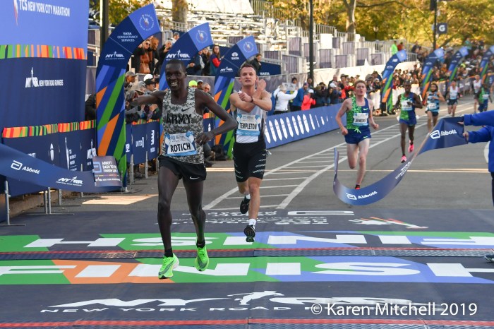 New York, NY, NOVEMBER 2, 2019—Anthony Rotich of Colorado Springs, Colorado put in a final surge to win a very close race with Aaron Templeton of Boulder, CO. Rotich and Templeton were both recorded officially at 13:48. Eric Jenkins of Portland, OR was a close third in 13:50 in an extremely competitive field. 2018 champ Shadrack Kipchirchir of Colorado Springs was fourth in 13:54. Jordan Mann of Providence, RI was fifth in 13:54.