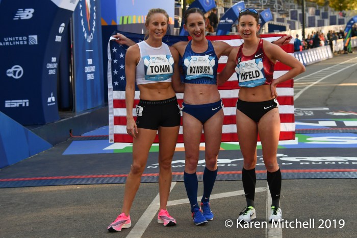 Shannon Rowbury of San Francisco, CA was the women’s champion in 15:43. Jessica Tonn of Scottsdale, AZ was second in 15:44. Emily Infeld of Portland, OR was third in 15:47. Shalaya Kipp, a US citizen living in Vancouver, BC, was fourth in 15:50. Ayla Granados of Castro Valley, CA was fifth in 15:53.