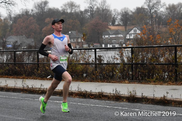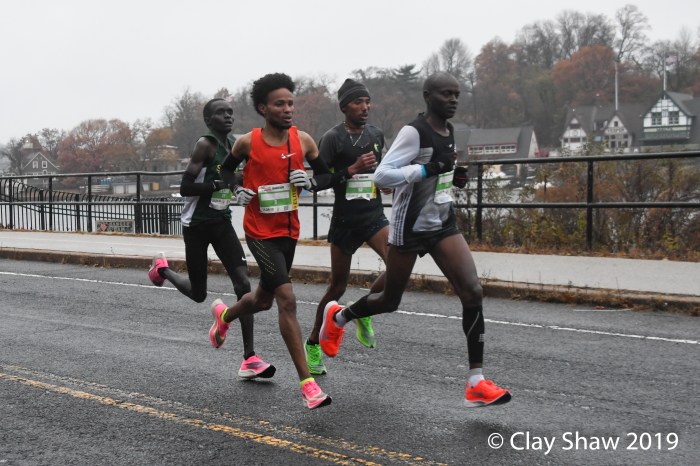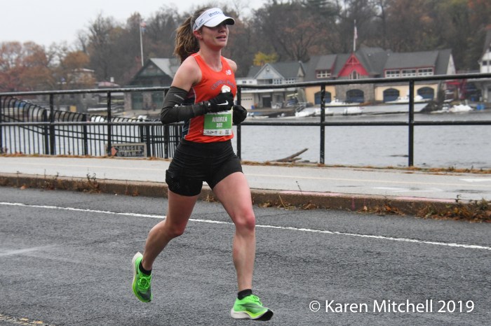 Feyne Gudeto Gemeda of Ethiopia set a new course record of 2:32:49. Serkalem Abrha also from Ethiopia had the record of 2:32:53, set last year. Abrha was back to defend her title, but sadly had a DNF, just after halfway. Viola Bor of Kenya, based in Toledo, OH was second in 2:40:00. Former Penn State runner, Katie Rodden of Cherry Hill, NJ who had an OQ and sixth place finish in 2018, moved up to the podium and lowered her PR to 2:40:50. Anne-Marie Comeau of St.Ferreol les Neiges, Quebec was fourth in 2:41:10. Comeau was on Canada’s Winter Olympic team as a cross-country skier. Allison Goldstein of Jersey City was fifth in 2:44:14. Sixth place finisher Andrea Bradshaw of New York City had an OQ of 2:44:15 in her debut at the marathon distance. Grace Bowen of New York City (2:44:49, 7th place), and Gabrielle Drummond of Somerville, MA (2:44:52, 8th place), also made the OQ standard.