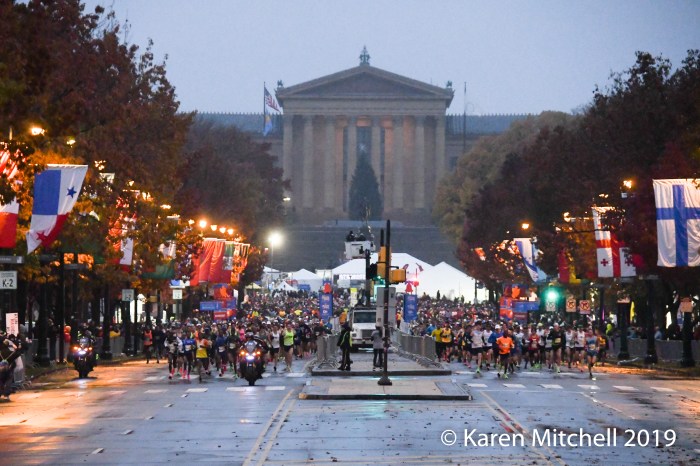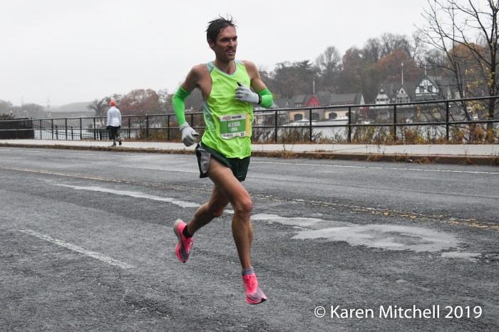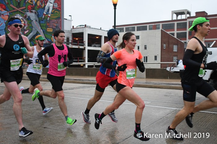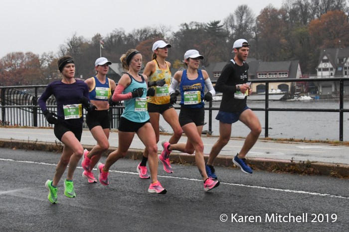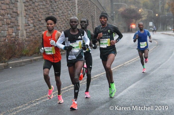 PHILADELPHIA, PA, NOVEMBER 24, 2019—Diriba Yigezu of Ethiopia, made the podium in 2018 in third place. Competitive and not satisfied, Yigezu return to Philadelphia to win in 2019, in 2:16:31. Yigezu is based in New York City, and had to deal with cold, rainy conditions. Milton Rotich, a Kenyan based in Albuquerque, NM, was over two minutes back, in 2:18:49. Former Harvard runner Connor Reck of Minneapolis, MN was third in 2:19:28. Urgesa Figa, an NYC based Ethiopian was fifth in 2:19:40. In total 10,045 finished the rainy (and very snowy for the later finishers) marathon. Besides the Ethiopians and Kenyans, there were lots of International runners competing. Two men from Canada, and one from Poland, and Norway placed in the top 20.