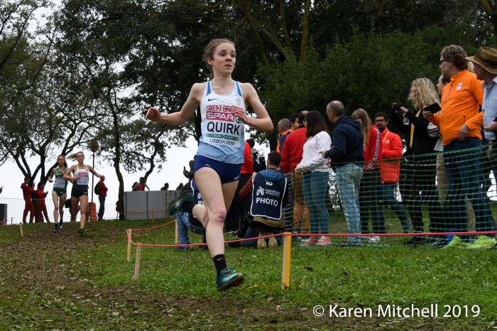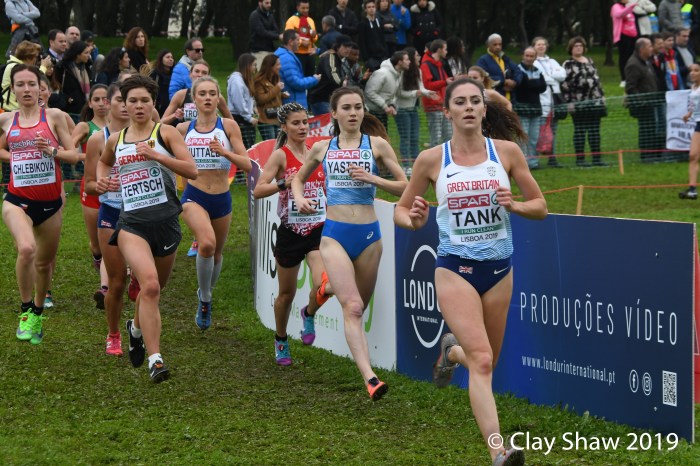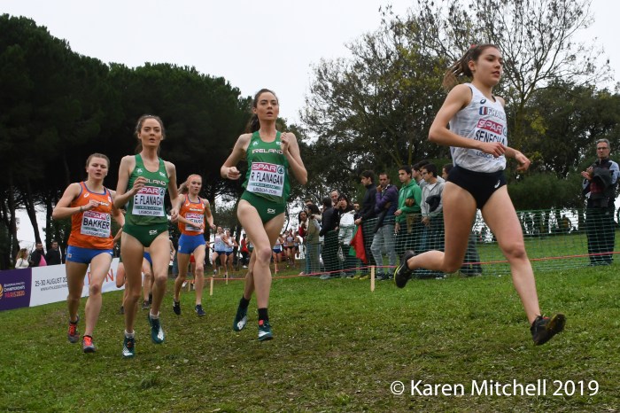 Anna Emilie Moller of Denmark is a happy winner with her second straight U23 Euro XC title. Moller’s 39-second win was the largest of the meet.Jimmy Gressier of France strikes a pose after winning his second straight Euro XC title.Mahamed Mahamed of Great Britain placed eighth. Mohamed Mohumed of Germany placed 16th. Behind them Abdessamed Oukhelfen of Spain earned the bronze with a third place finish.Czech Republic placed as eighth team. Led by Marek Chrascina who placed 23rd and Damian Vich who placed 35th.Jack O’Leary of Ireland placed 25th, as Team Ireland placed 7th. Ignacio Fontes of Spain, would place 13th.Irish guys place 7th. Cormac Dalton, Jack O’Leary, Peter Lynch, and Brian Fay.Poppy Tank of Great Britain placed 18th. Tank runs for the University of Utah.Aukse Linkute and Kamile Vaidziulyte of Lithuania run together in the U23 race.Stephanie Cotter of Ireland puts the Colorado high altitude training towards a great result, third place and the bronze. Cotter goes to Adams State College in Alamosa, Colorado.Hannah Nuttall of Great Britain placed 31st. Nuttall runs for the University of New Mexico.Anna Emilie Moller of Denmark cruises through Bela Vista Park on way to her second straight U23 championship.Jasmjn Lau of Netherlands is elated at winning the silver in the U23 race.Stephanie Cotter of Ireland finishes third, gets a hug from champion Anna Emilie Moller of Denmark.Diane Van Es of Netherlands takes 11th, just holding off Lea Meyer of Germany (12th), Anna Tropina (ANA) takes 13th. Van Es was the team’s third scorer as Netherlands won team gold.Ireland U23 take silver. Eilish Flanagan, Roisin Flanagan, Stephanie Cotter, Sorcha McAllister, Claire Fagan, and Fian Sweeney are a happy bunch.Anna Emilie Moller of Denmark proudly displays Danish flag after second straight U23 Euro XC title.Jimmy Gressier of France holds back a bit early in the race as others lead. Emile Cairess of Great Britain (60th), Elzan Bibic of Serbia (2nd), and Mahamed Mahemed of Great Britain (8th) charge the uphill.Cathal Doyle of Ireland (71st), and Sergio Alegre of Spain (64th) on the uphill.Yohanes Chiappinelli of Italy finshed 5th, and held off Team France. Team France did win the team gold. Mohamed-Amine El Bouajaji (10th), Fabien Palcau (6th), and Hugo Hay (18th) give chase.Jasmijn Lau of Netherlands leads the would be 2-time champ Anna Emilie Moller of Denmark, and Stephanie Cotter of Ireland. The three would earn podium positions in the U23 race.Twins Eilish Flanagan and Roisin Flanagan of Ireland, who both attend Adams State College in Colorado, chase Mathilde Senechal of France. Jasmijn Bakker of Netherlands would pass them all on way to 4th place.Anna Emilie Moller of Denmark charges a downhill. Stephanie Cotter of Ireland gives chase. Moller placed 1st, Cotter 3rd in the U23.Amelia Quirk of Great Britain placed 15th, and was third scorer on the Great Britain bronze winning team in the U23.Federica Zanne of Italy is engaged in race with Jasmijn Bakker of Netherlands, and Bronwen Owen of Great Britain. Zanne placed 5th, Bakker 4th, and Owen 7th in the U23.Happy jumping Irish gals take team silver in U23 race. Eilish Flanagan, Roisin Flanagan, Stephanie Cotter, Claie Fagan, Sorcha McAllister, and Fian Sweeney celebrate.