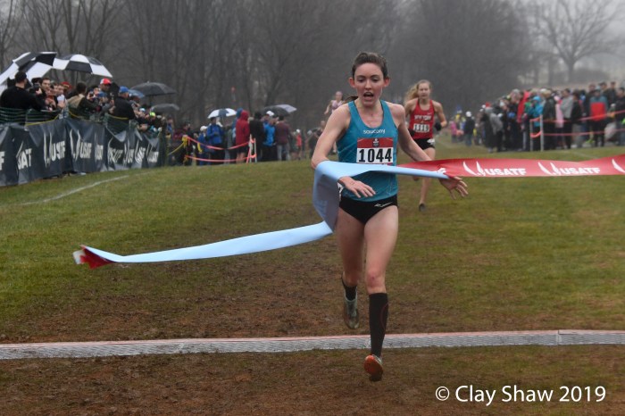 BETHLEHEM, PA, December 14, 2019—Aisling Cuffe, from Croton-On-Hudson, NY, and running for Saucony won the Open Women 6K in 20:07. Cuffe, now 26, was once a HS running prodigy, having won the 2010 Foot Locker XC national championship and representing the USA in the World XC at Punta Umbria, Spain in 2011 in the junior race. Cuffe held off high school sensation Katelyn Tuohy, 17, of Rockland County, NY, who clocked in at 20:11. Tuohy recently chose to run collegiately at North Carolina State.