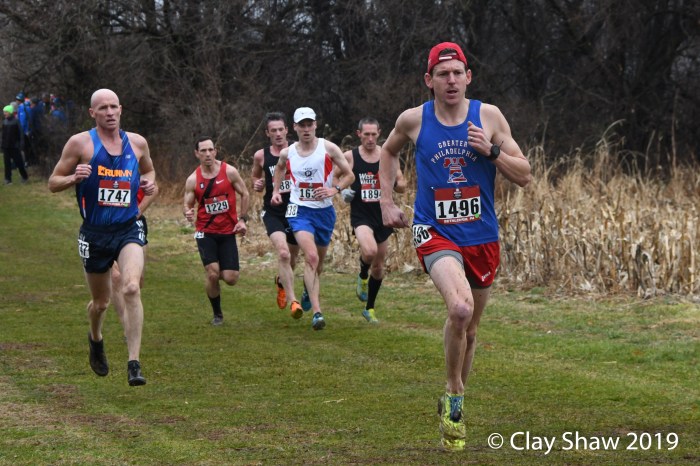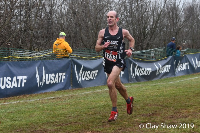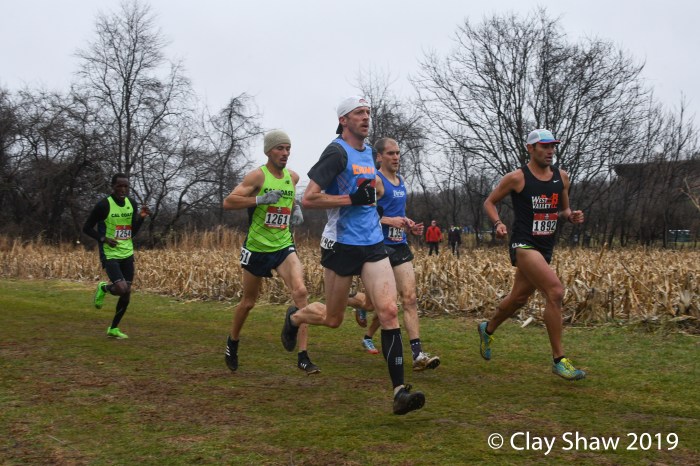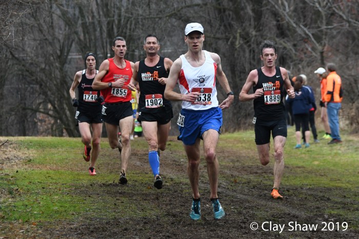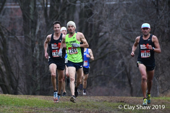 BETHLEHEM, PA, DECEMBER 14, 2019—Jacques Sallberg of the Cal Coast Track Club won the 10K that had 444 Masters runners between the ages of 40 and 59. Sallberg ran the muddy course at Lehigh University in 32:55. Peter Gilmore of West Valley Track Club was second in 33:00. Eric Loeffler of Run MN was third in 33:08, Loeffler qualified for the USA Olympic Trials with a 2:17:36 in Sacramento in 2018. Jorge Maravilla of West Valley Track Club was fourth in 33:23. Maravilla won the San Francisco Marathon in 2017 and 2018. Peter Hammer of the Boston Athletic Association was 18th, and first runner over 50, in 34:36.