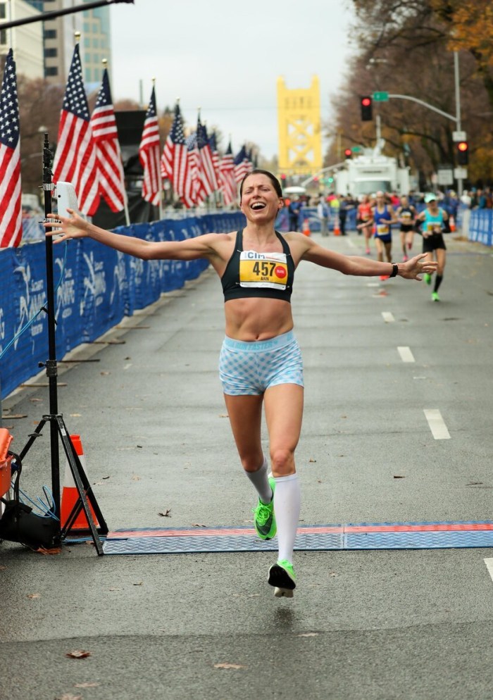 Running my OTQ [Olympic Trials Qualifier] at CIM this past December was a total dream come true, and a surreal experience. I knew I had a very good shot at sub-2:45, but everything just came together in that race for me in the right ways. For quite a few days after the race, I could barely believe I had actually done it! The race was honestly pretty painful even at the mid-point, as I had some quad tightness setting in even at mile 10, but I could also see the 2:45 pacers right in front of me, so I just tried to glue myself to them and not let go.