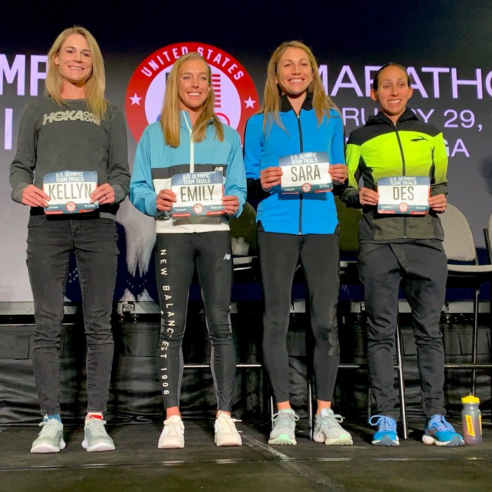 The top athletes were asked well-thought-out questions by high school journalists from Atlanta area schools. Sara Hall of Flagstaff, AZ who had a 2:22:16 OQ in Berlin in 2019, didn’t want to give any new training secrets, but did say she had been doing extra work in the gym. Emily Sisson of Providence, RI qualified with a 2:23:08 in London 2019, her marathon debut. When asked about her training, Sisson replied that she had been running up to 120 miles per week, doing her winter training in Arizona. Kellyn Taylor set her 2:24:29 qualifier and personal best (PB) in a win at Grandma’s Marathon in 2018. She has been training hard; raising children, both biological and foster, along with her husband Kyle. She has completed her certification as a firefighter, which is on hold as she pursues her Olympic goal. Des Linden of Charlevoix, MI ran a 2:26:46 in New York City in 2019 as her qualifier. Linden owns a PB of 2:22:38 set in Boston in 2011. If Linden finishes on the podium on Saturday, she will be the first female, three-time Olympic marathoner.