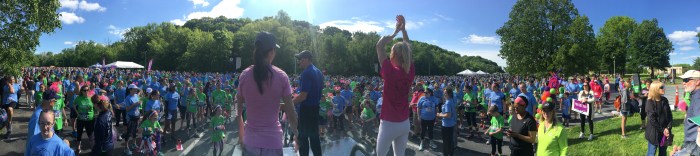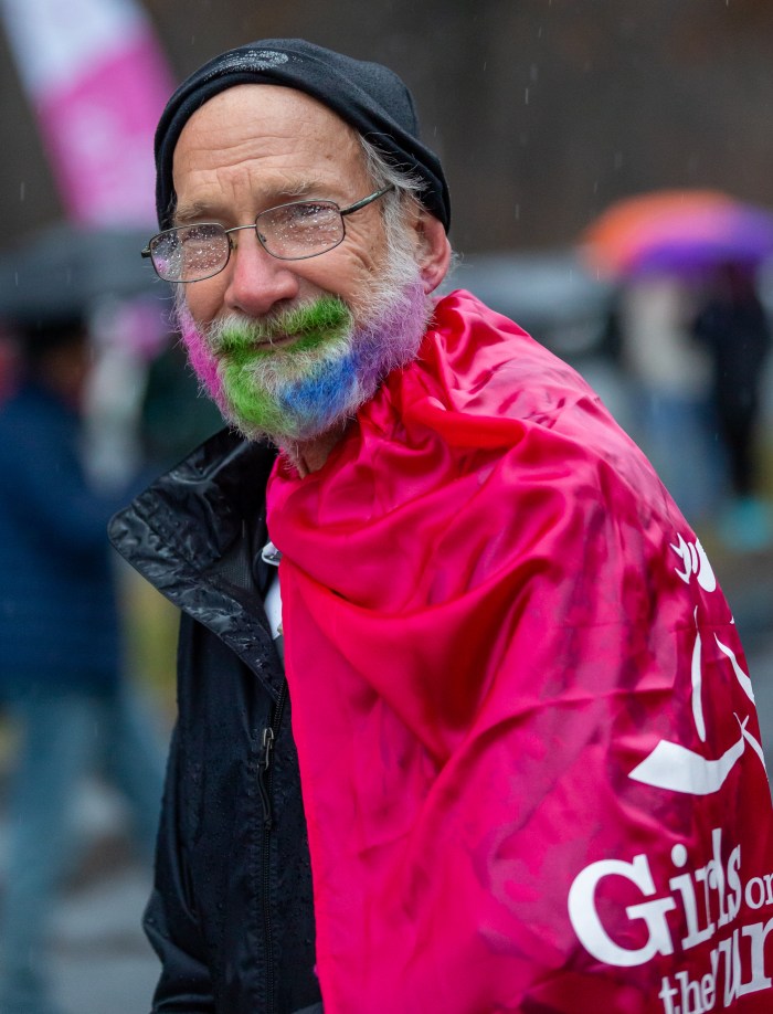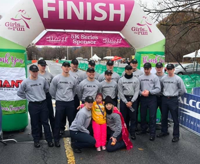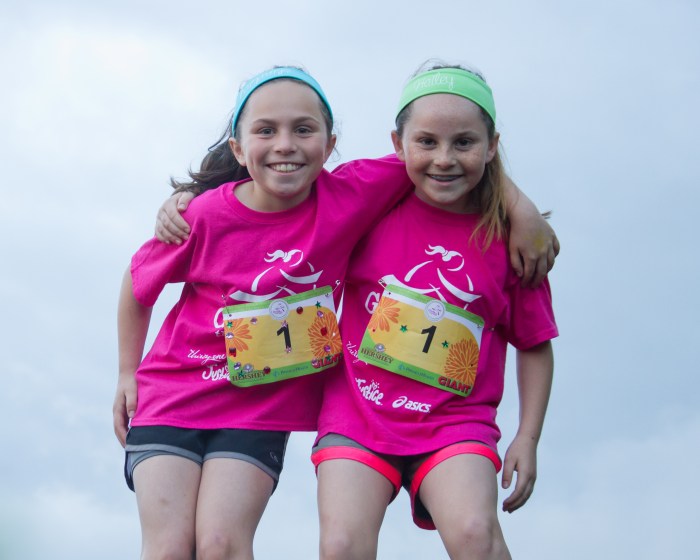 Each girl runs with an adult Running Buddy. Additional volunteers with pink satin capes and cow bells—our Spirit Runners—run the course to provide a power boost to any girl who looks like she needs some support, or has outrun her Running Buddy! Their job is also to run in with the last runner. Last spring, Mel taught us all a lesson. Mel has Down Syndrome. Running with her dad, she never gave up. She rounded the last corner into the finish straightaway, surrounded by Spirit Runners and other girls from her team, and a loud cheer from the crowd. The PA State Police cadets who were volunteering asked if they could also run her in. There were no dry eyes as Mel crossed the finish line with a crowd of 30 people around her, her medal placed around her neck, the cheers of the crowd ringing in her ears. She may have been the last girl to cross the finish line that day, but that didn’t diminish her accomplishment. We measure effort, courage, resilience, and determination and Mel won in all categories.