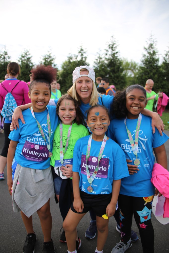 GOTR is important because by age six, girls identify boys as smarter than they are. Parents are twice as likely to Google “Is my son gifted” than “Is my daughter gifted.” By age nine, girls’ self-confidence peaks and then begins a steep fall throughout adolescence. Girls drop out of activities they used to love, stop raising their hand in class, and focus on “fitting in.” Girls on the Run teaches them it’s okay to stand out. By middle school, girls outperform boys in math and science, but perceive their skills as inferior, so they don’t go on to study these subjects at a higher level. The GOTR program serves as a bridge by providing somewhere girls can celebrate who they truly are, grow in self-awareness and confidence, and learn to support and encourage each other as they work toward a shared goal.