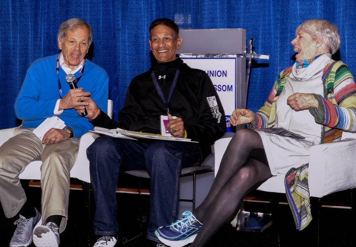 Pre-race panel discussion for the 2017 Credit Union Cherry Blossom race. Jeff Darman, George Banker, and Henley Gabeau. Henley was RRCA President and the first Executive Director 1990-2001.