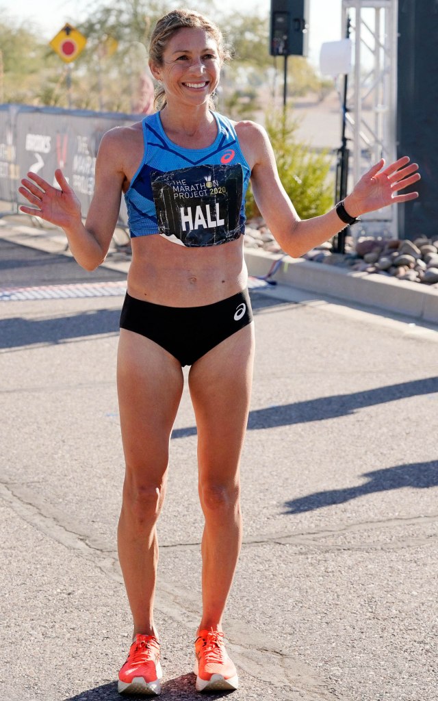 Sara Hall was coming off her epic Buckingham Palace charge in the London Marathon where she took second in an awesome display of heart and fortitude. Hall now had her eyes on the 2:19:36 AR set in London by Deena Kastor 14 years ago. She had four pacers; one was Pennsylvania’s Darryl Brown of Exton. She was joined by Kellyn Taylor through the first half in 1:09:38 and on pace to break the record. Shortly after the halfway point Taylor began to fall back. Hall pushed on with the pacers and began to slow just slightly, but holding her own and pushing hard. She would lose over a minute in the second half, but would set a big PB and become #2 All-Time with a winning time of 2:20:32. Hall said, “It was a tough race. I wanted to run a bit faster than that, but it’s a good PR.”