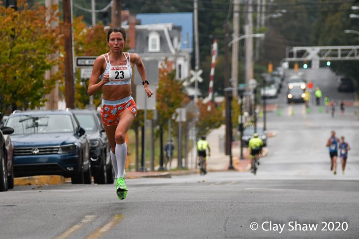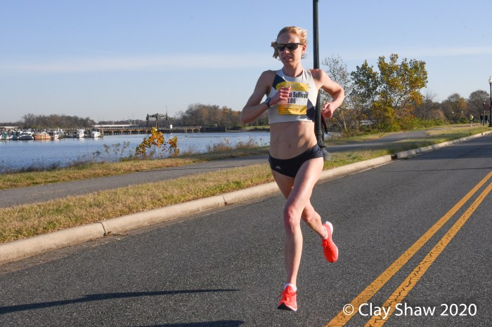 Susanna Sullivan of Reston, VA won the women’s division in 1:17:56, running all alone, with only Gearinger and second place male Roger Hooper (1:11:20) in front of her. She led a competitive women’s field. 2020 women’s champ Laurel LeMoigne of Springfield, VA was second in 1:22:36. Ann Mazur of Charlottesville, VA was third in 1:23:45. Brigid Gutierrez of Charlottesville, VA was fourth in 1:29:54. The 5K had 136 finishers. Jacob Warner of Williamsburg won in 16:44. Rachel Parthasarthy of Madison, CT was the women’s champ in 19:33.
