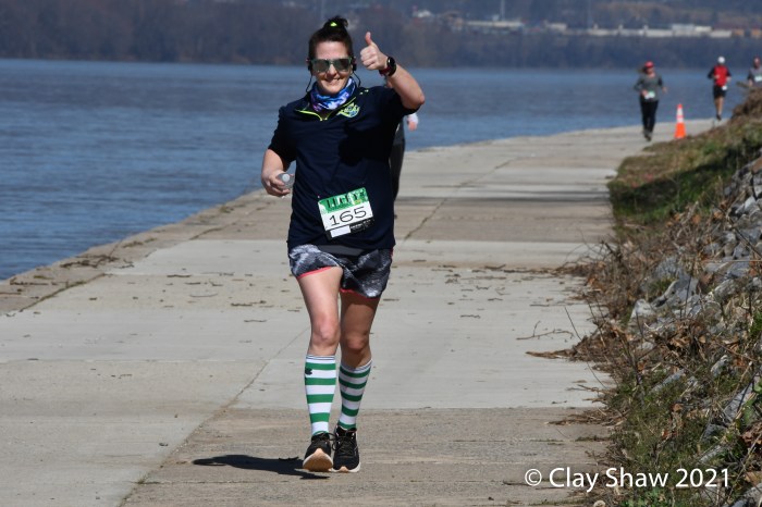 Elise Peterson of Montoursville, PA gives it a thumbs up in the Lucky Charm 10K.