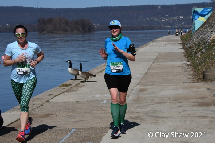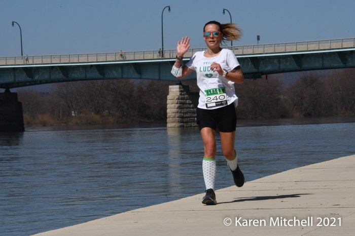 Becky Wile of Columbia toured the Lucky Charm 10K course in 56:07.