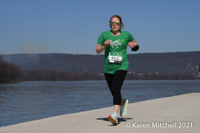 Sarah Weaver of Hummelstown races along the Susquehanna River in the Lucky Charm 10K.
