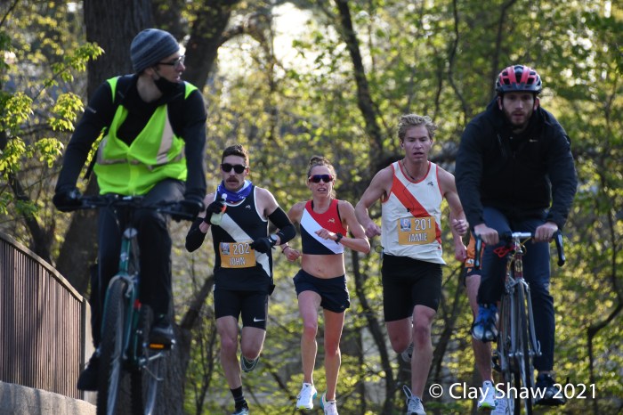 All seven runners broke 2:50. The venue did have a fair amount of bike traffic, recreational runners, dog walkers, etc., even with the 7:00 AM start. The weather was beautiful for the marathon, which was held a day earlier than originally planned due to a wet forecast for the 25th.