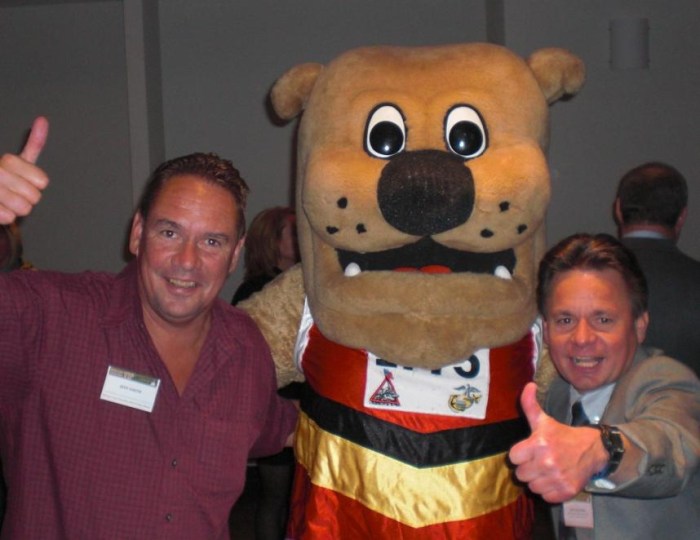 10-24-2008 Marine Corps Marathon Hall of Fame Induction: Jeff Smith, Miles Marathon Mascot, Jeff Scuffins (Photo Credit: George Banker)