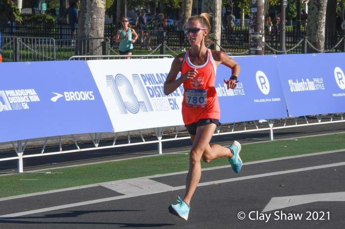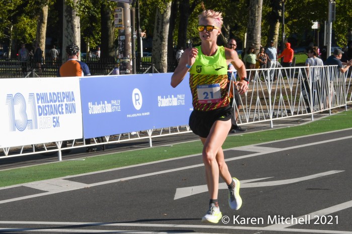 PHILADELPHIA, PA, SEPTEMBER 19, 2021—Atsede Tesema of Ethiopia, based in Colorado Springs won the Philadelphia Distance Run Half Marathon in 1:10:43. Makena Morely of Bozeman, MT was second in 1:11:36. Iveen Chepkemoi of Kenya (also based in Colorado Springs) was third in 1:12:08. Maegan Krifchin of Marietta, GA was fourth in 1:12:21. Sarah Pagano of San Diego, CA was fifth in 1:12:35. Allison Emmons of Hockessin, DE was the masters champ in 1:21:36. She just nipped former Baltimore Marathon winner Silvia Baage of Rockville, MD (1:21:44) to the finish line.