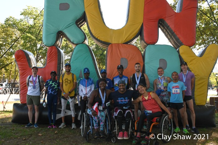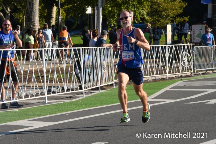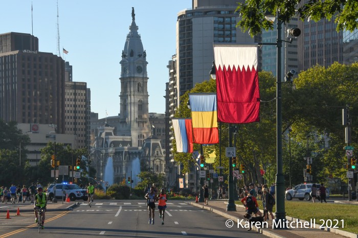 Tsegay Tuemay Weldibanos of Eritrea (based in Flagstaff, AZ) won by four seconds in 1:02:44. Dominic Korir of Kenya (based in Colorado Springs) was a close second in 1:02:48. The duo had broken away from a five-man lead pack near City Hall after a brief loop in Downtown Philadelphia. Moh Hrezi of Libya, was third in 1:03:26. Hrezi lives in Philadelphia. Josh Izewski of Blowing Rock, NC was fourth in 1:03:38, Wilkerson Given of Atlanta was fifth in 1:04:13. Loc O of Williamsburg, PA was the top master in 1:12:34. In the non-binary division, Jacklyn Vasko won in 1:21:57. This is the first race we’ve covered with a non-binary division, and other races may follow suit.