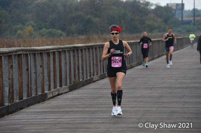 Wilmington, DE, October 24, 2021—The races start south of Riverfront Wilmington and go up the boardwalk and past the DuPont Environmental Education Center, then down the boards through the marshes of the Peterson Refuge Boardwalk, all part of the Jack A Markell Trail. The out-and-back course turns around, north of New Castle.