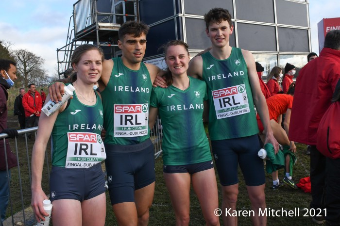 Luke McCann: “The plan was to get the baton to Andrew in contention, because we know what he is capable of, he’s the number one 1500m runner in the country and one of the best in Europe. Ciara did exactly what she was asked to do, get out strong and get off to a good start. I didn’t really expect to be in the lead coming around that lap, but I just tried my best to hold on and give it off to Siofra in a good position, but look that’s sport, someone has to come fourth at the end of the day. We went for first and we have absolutely no regrets.”